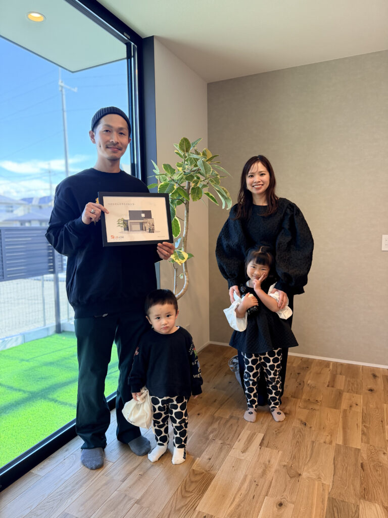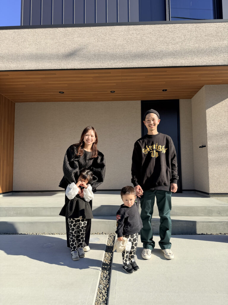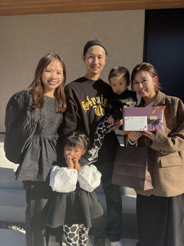 完成したお家の前で、ご家族みなさんそろっての記念写真📸