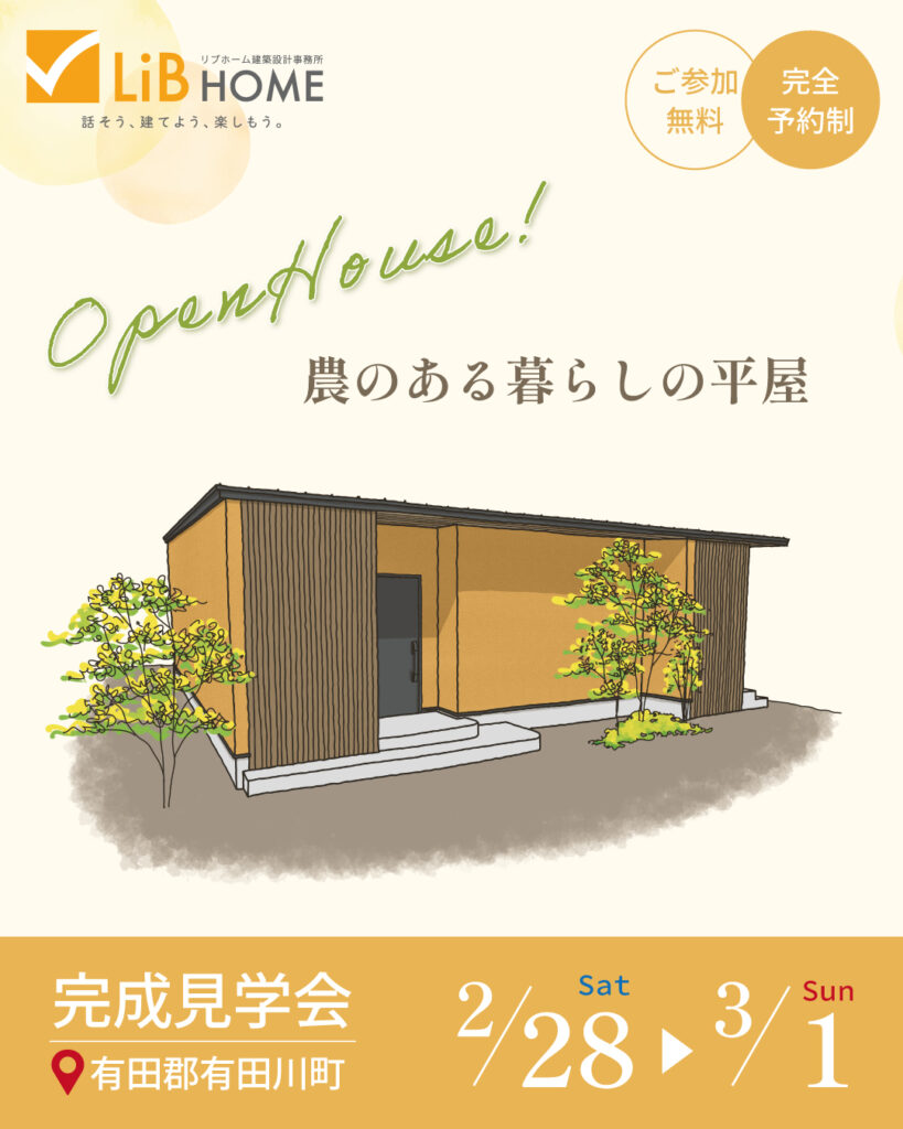 『農のある暮らしの平屋』の完成見学会を開催いたします☺️
