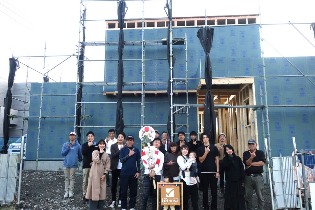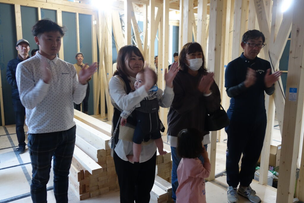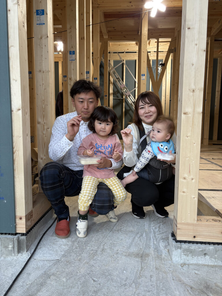 まだ柱と梁だけの空間ですが、家のかたちが一気に立ち上がる特別な一日です。