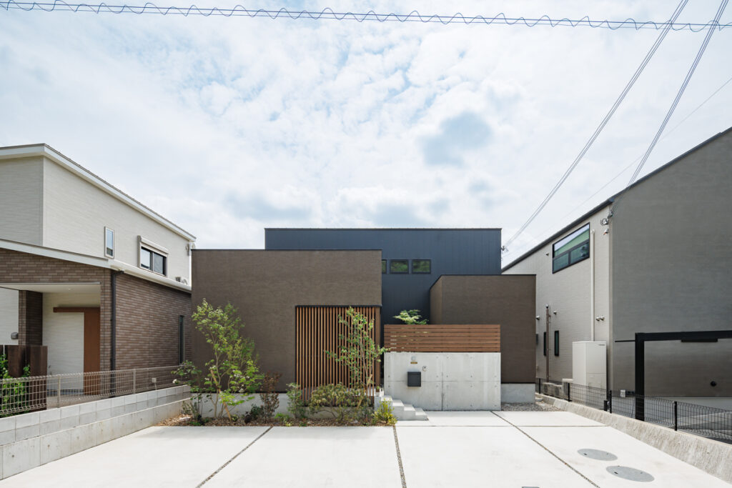 ブロックを積み上げたような遊び心がありつつも、シンプルな外観のお家。
