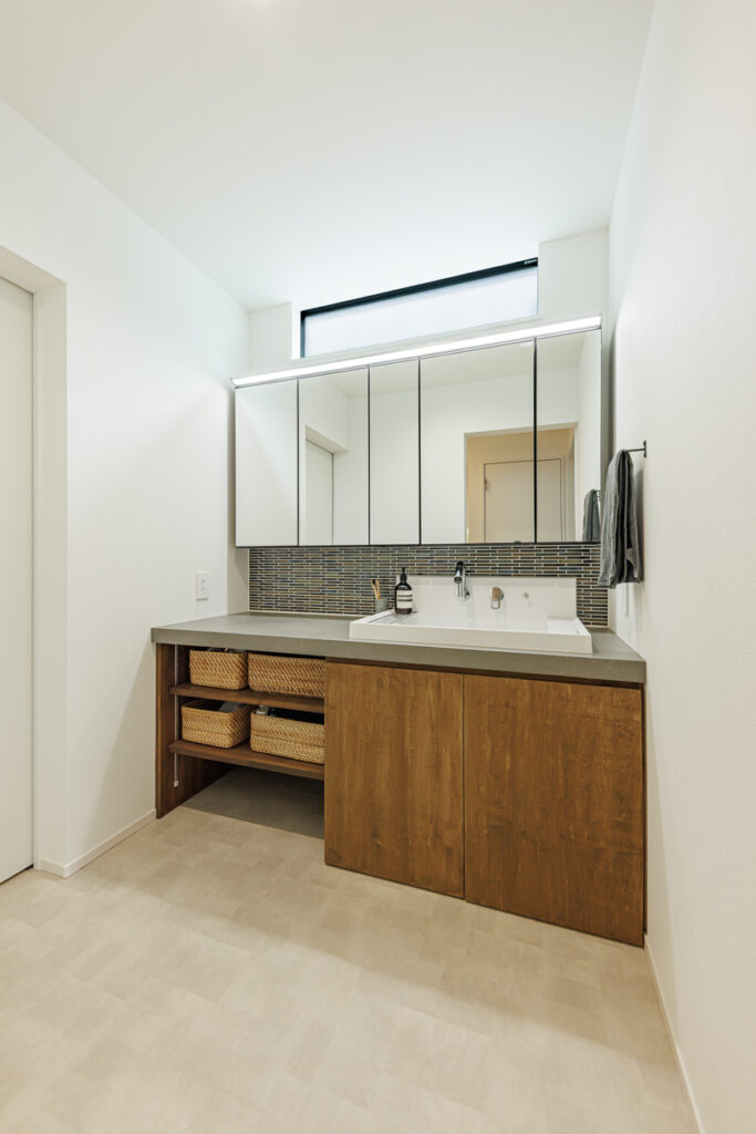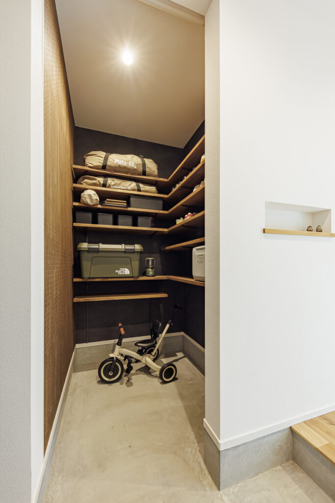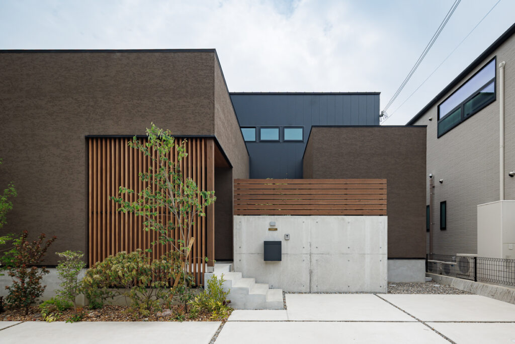 ポーチ脇には木製の格子を設置し、外観のアクセントになるようにしました。
