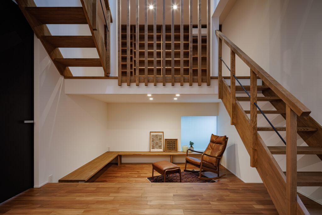 掘りごたつやスキップフロア、本棚やピットインリビングなど、遊び心ある仕掛けも随所に。