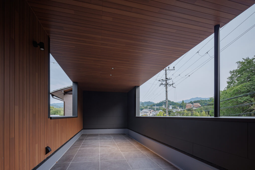 カフェのような外観にこだわり、真っ黒でフラットな窯業系サイディングでシックな印象に。