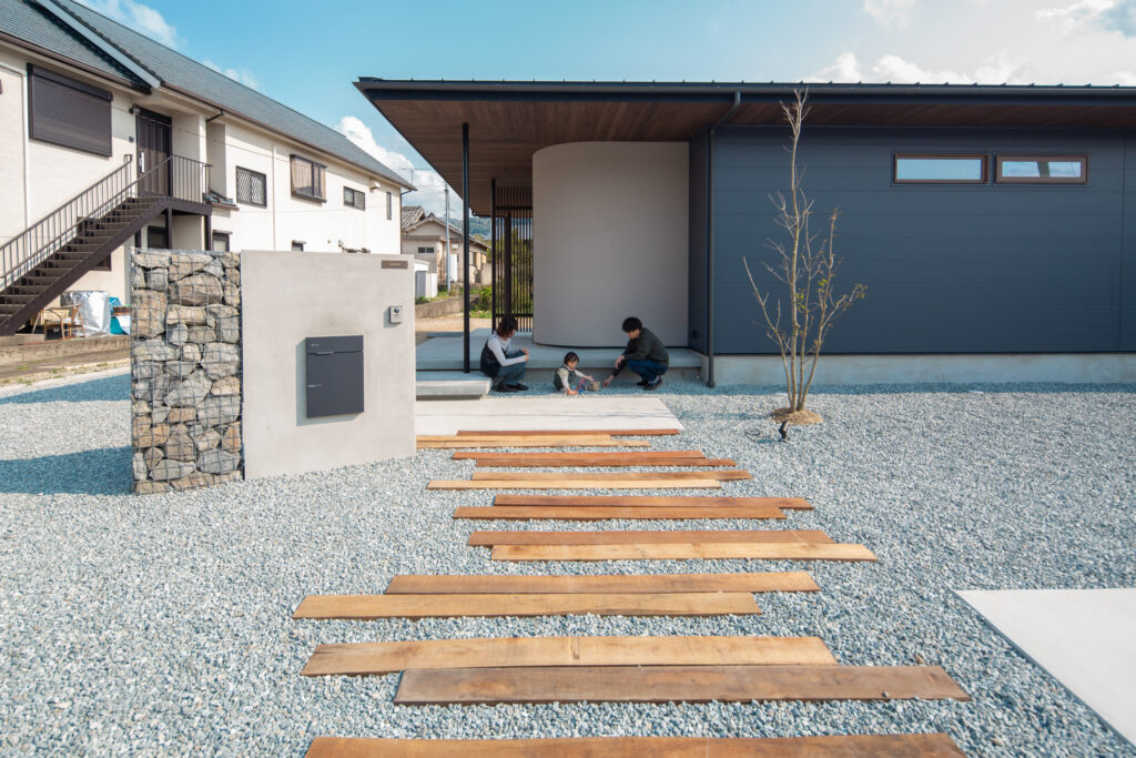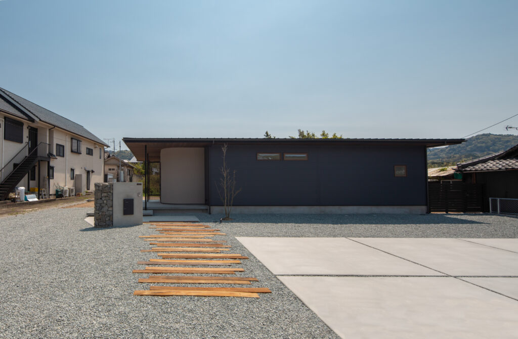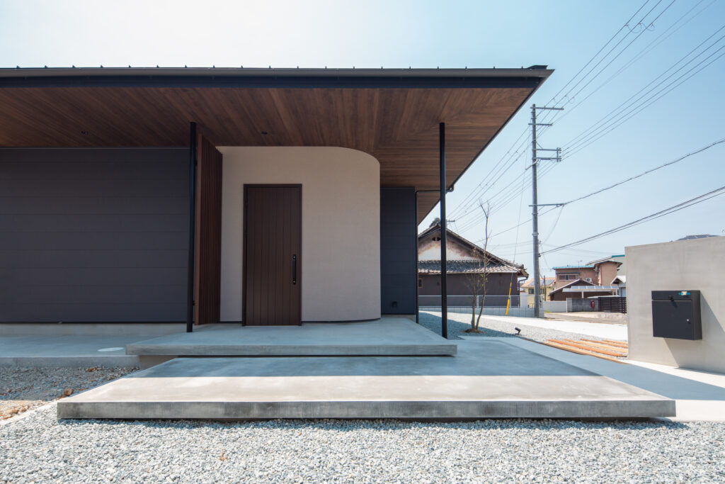 やわらかな曲線を描くアール壁が、穏やかでぬくもりを感じる落ち着いた印象の平屋。