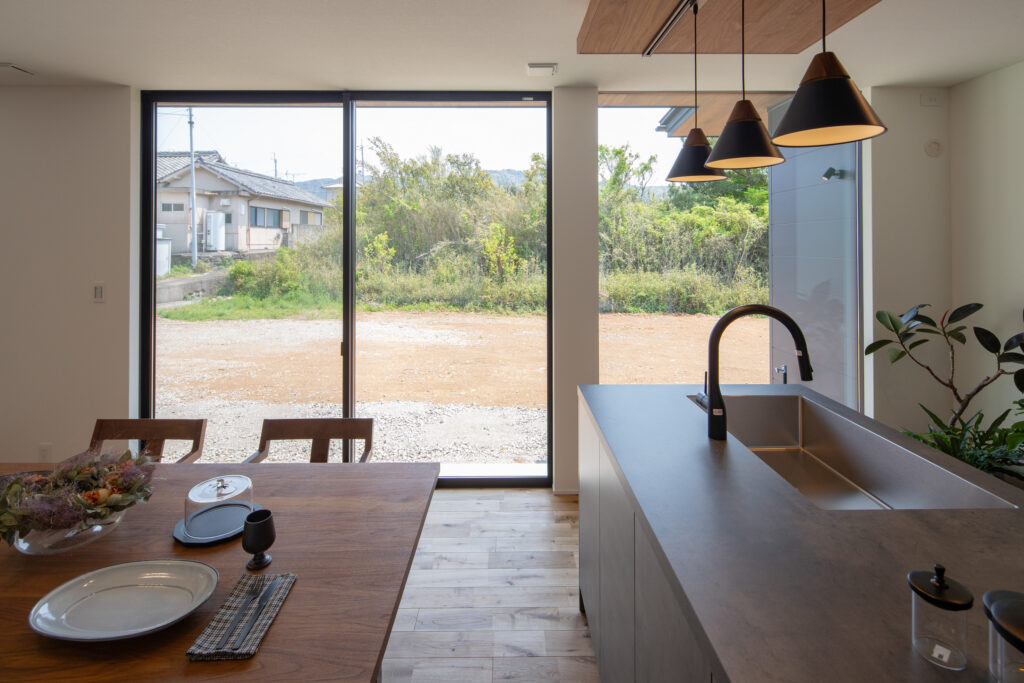 深い軒は、夏の強い日差しを遮り、冬は優しい光を取り込み、外とつながる心地よさを生み出します。